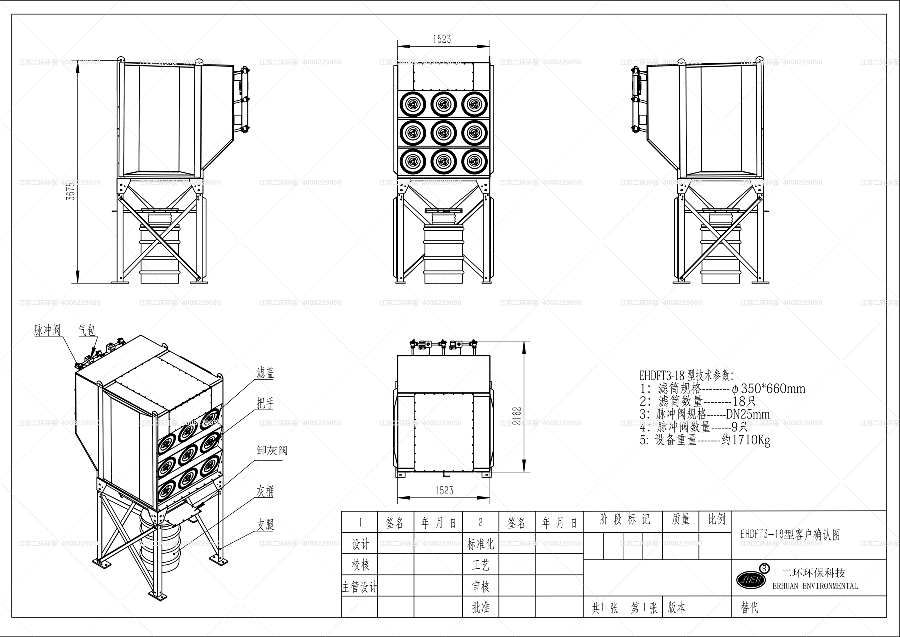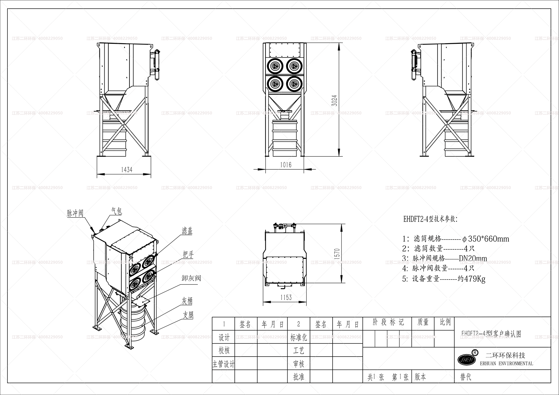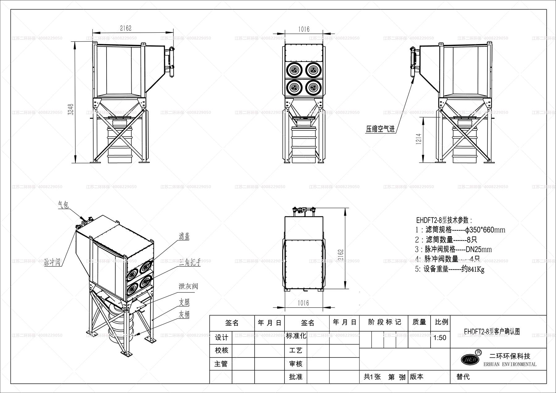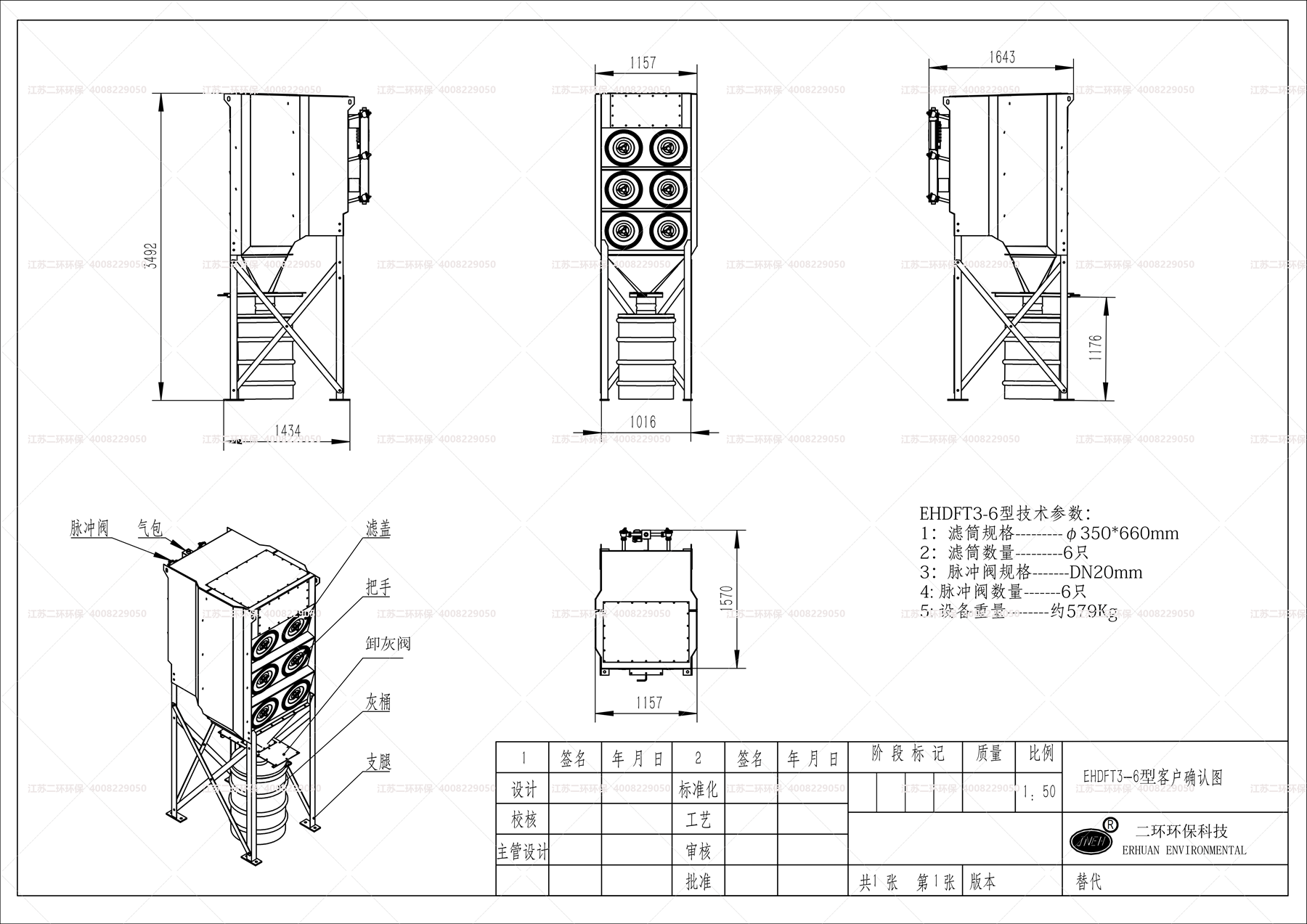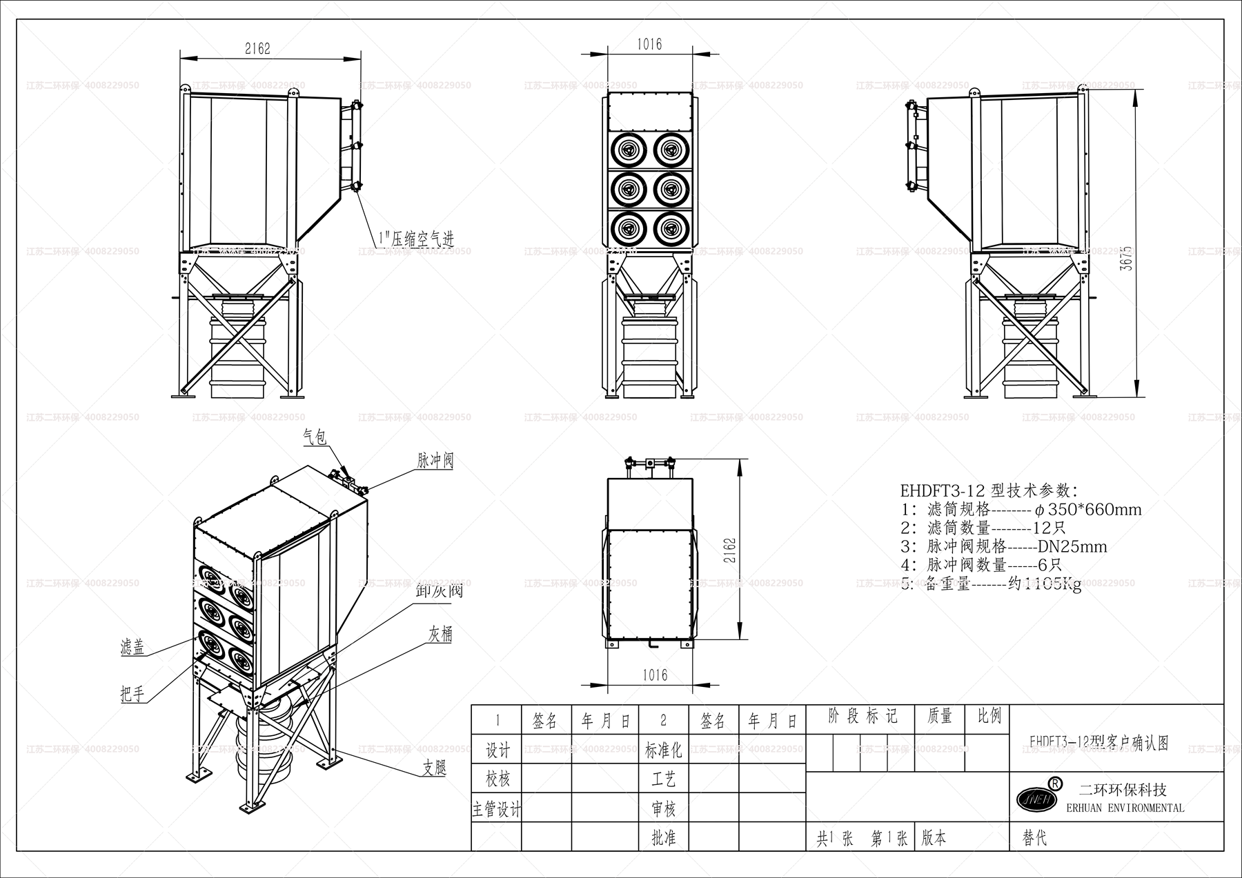 2、濾筒采用的是國際標準規格350*660MM,通常以單筒625風量來標定。