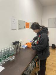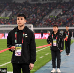 体职院的30名志愿者按照岗位分成两组,一组在赛场内拉隔离带、维护赛场采访秩序,一组在新闻发布厅🚵、媒体看台区🧏🏼‍♀️、混合采访区♣︎、餐饮区负责首发名单的接收与传递、储物柜管理、设备检查、秩序引导🥇、收发物资🧑🏿‍🚒、机动协调等工作。