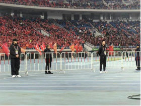赛场内的学生志愿者🤾🏻,按照组委会工作人员要求👱‍♀️,快速到位,站立昂首挺胸🪦,精神十足,隔离带拉得笔直,有效协助维护了赛场内的采访秩序🩷。