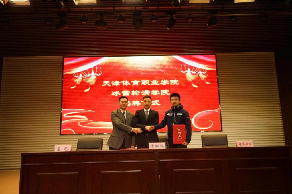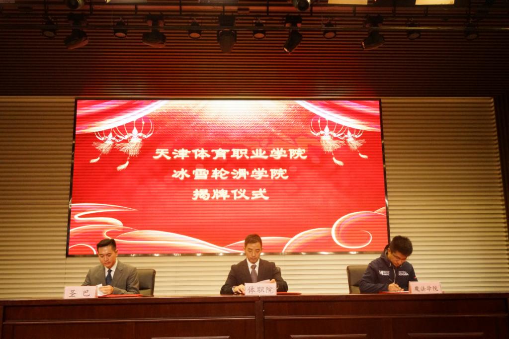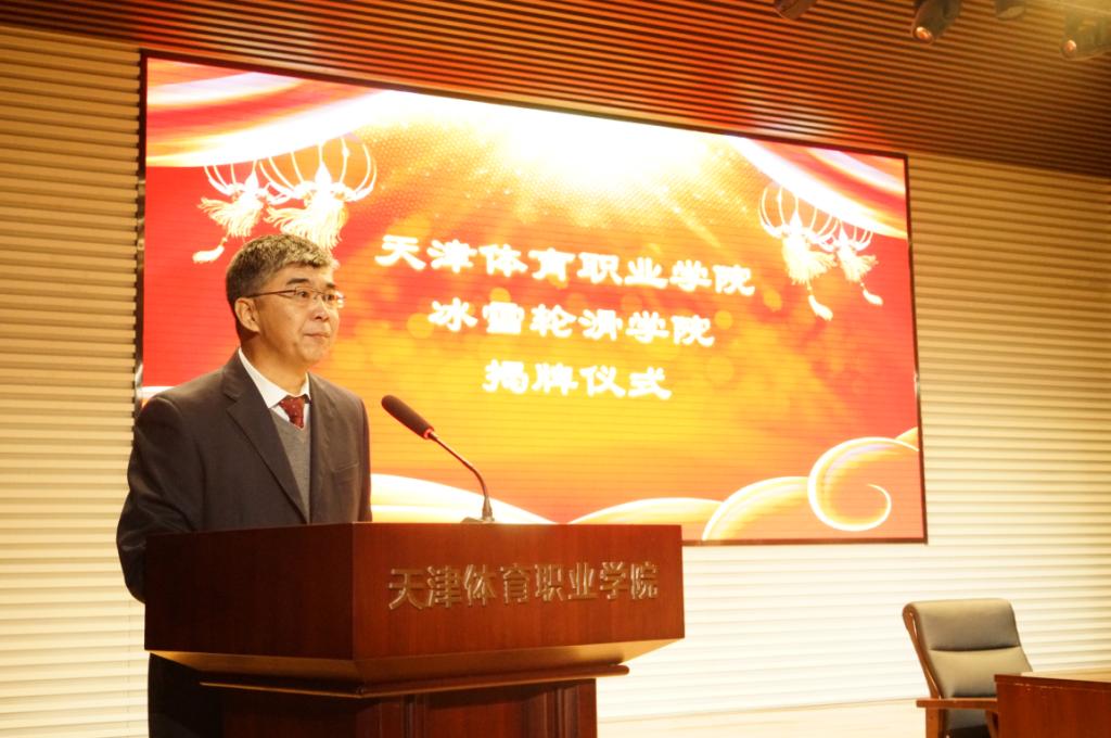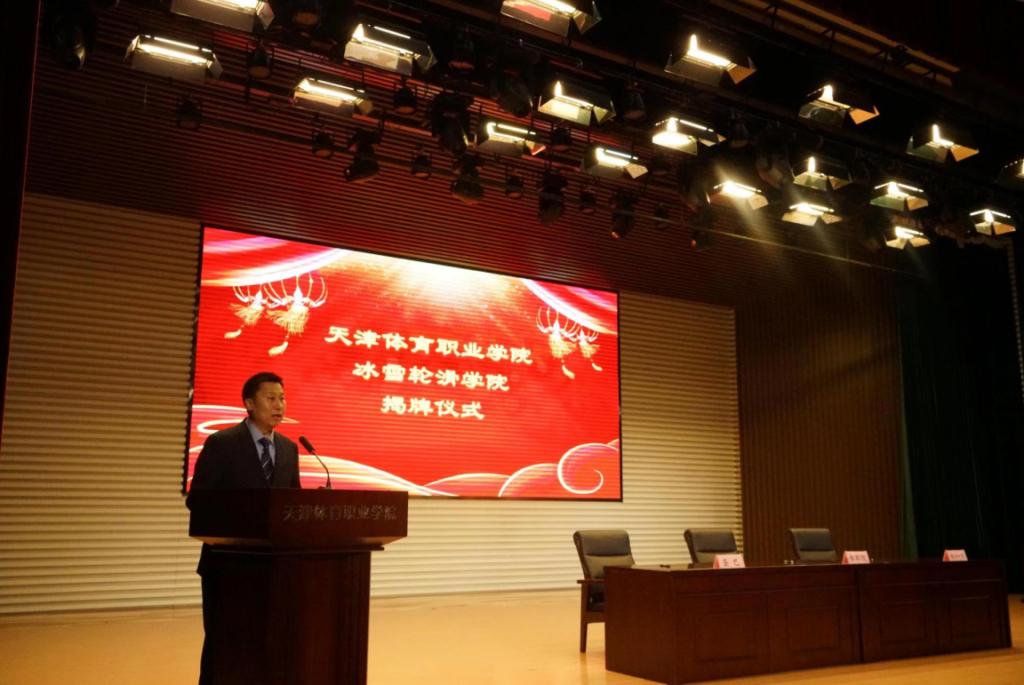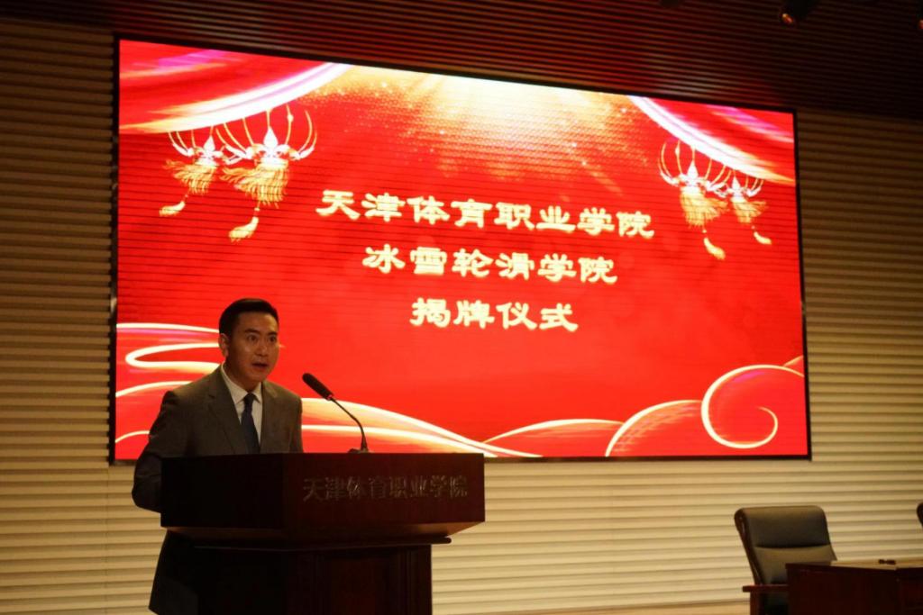 学院党委副书记、院长刘钦龙首先代表学院致辞。他指出,本着“共建、共赢、共育、共享”的原则与两家企业联合共创二级学院👨👨👦👦,是学院着力校企合作的重要一步🤱🏿,是响应习近平总书记“带动中国3亿多人参与冰雪运动”号召的实践举措,是落实《鼓励社会力量参与职业教育办学激发职业院校办学活力的指导意见》的积极探索🆎,学院将紧紧抓住新时期职业教育发展规律💈,聚力高职院校的内涵发展,让学院在天津竞技体育、群众体育和体育产业的发展中贡献更大力量。