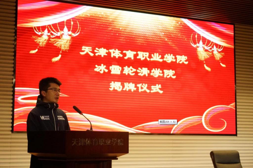 为深入贯彻落实习近平总书记提出的“北京举办冬奥会将带动中国3亿多人参与冰雪运动”指示精神及国家体育总局提出“轮转冰”跨项选材的理念,2019年11月15日上午,彩神Vll学院冰雪轮滑学院揭牌仪式在体职院报告厅隆重举行,市体育局党委书记⛓、局长李克敏🤏🏿🫧,局党委委员、副局长张欣,天津市冬季项目运动管理中心主任张仲权🚠,局宣教法规处三级调研员冷雪,微遇见(天津)体育科技有限公司总经理张岩,圣巴(上海)文化传播有限公司副总经理汝海波出席揭牌仪式🦜,学院领导班子及相关处室负责同志参加,揭牌仪式由院党委书记王伟主持。