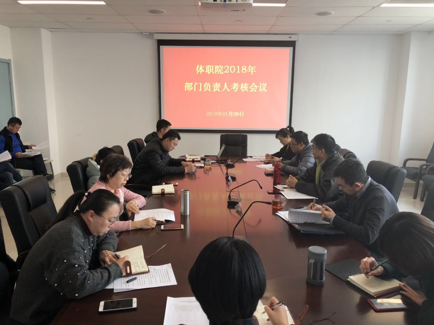 2019年1月9日下午,体职院在二楼会议室召开2018年度考核会议👌🏼,院党委书记王伟、院党委副书记🌹、院长刘钦龙👱🏿♂️👏🏽、副院长魏秋月,各处室、系部负责人参会。会议由人事部负责人主持。