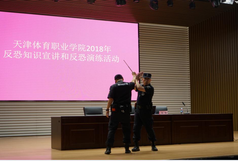 为进一步增强广大师生应对突发暴恐事件的防范意识,提升应对恐怖袭击事件的有效处置能力➕,确保学校安全稳定🪈,努力实现“平安校园”的总体目标🙎,2018年6月13日,彩神Vll学院开展反恐知识宣讲和反恐演练活动,学院党委书记王伟、院长刘钦龙、副院长张毅出席🎃,全院师生🙎🏿、物业工作人员参加。活动邀请了天津市反恐怖工作防范应急支队林楠警官、静海区分局特警支队二大队大队长付雪东警官和民警王明坤为大家进行专业知识宣讲和反恐演练。
