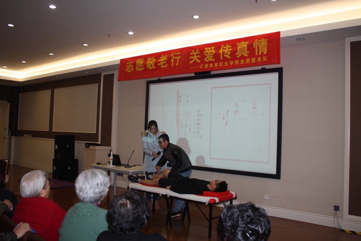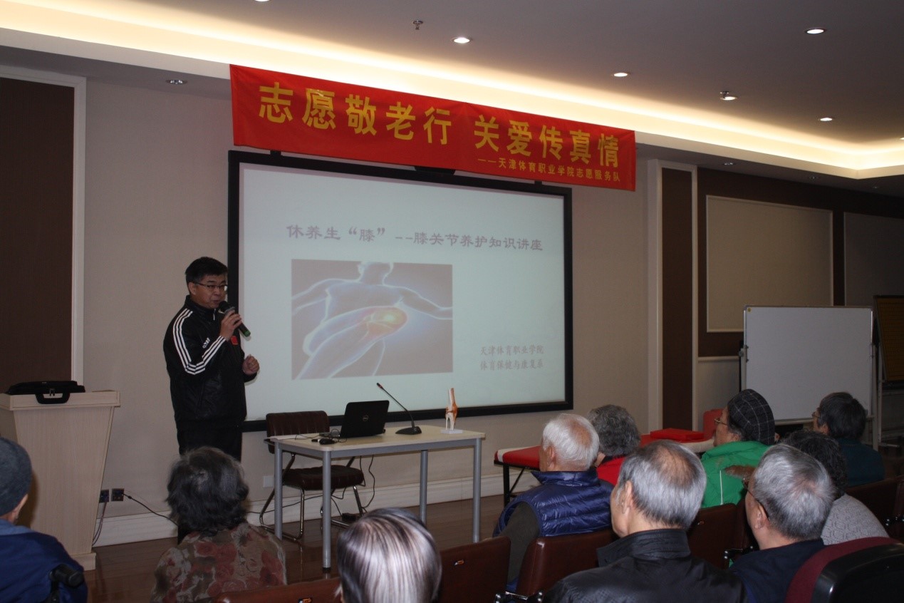 123日上午🧓🏼,按照天津市第十一届社区教育展示周,暨2017年天津市全民终身学习活动周的工作要求,学院领导高度重视,亲自带队并部署工作,经办公室组织协调,体育保健与康复系的师生到位于静海区的康宁津园老年公寓举办《休养生“膝”——老年人膝关节养护知识》主题讲座,为老年人讲解关于膝关节养护知识💉👼🏻,带领他们实践操作并解答健康难题。
