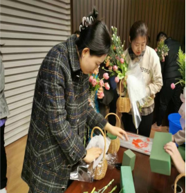 之后进行了插花活动🚵🏽‍♂️,教职工们纷纷来到台上⚗️,挑选自己心仪的鲜花🤵🏿,设计自己的花篮作品™️,插花过程中陶冶情操🕵🏽‍♂️,气氛热闹而祥和。此时的她们不仅是祖国栋梁的培育者,更是爱花爱美爱生活的伟大女性。