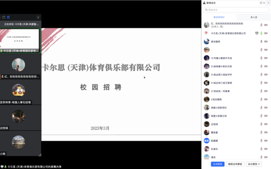 为做好我院2023届毕业生就业服务工作,构建毕业生与企业的交流平台。315上午我院特邀天津球晟体育科技有限公司👰🏽‍♂️、卡尔斯(天津)体育俱乐部有限公司、天津市豪邦篮球俱乐部是三家企业负责人在腾讯会议平台为2023届毕业生进行线上宣讲👩🏿‍🦰。
