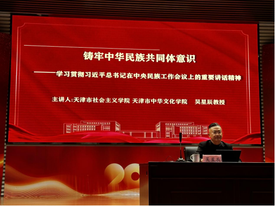 为深入学习贯彻党的二十届三中全会精神,深刻领会习近平总书记关于加强和改进民族工作的重要思想🙍🏻♂️,贯彻落实习近平总书记关于铸牢中华民族共同体意识的重要论述,引导广大师生牢固树立中华民族共同体理念,促进各民族交往交流交融,建设中华民族共有精神家园⇢。11月13日下午,我院邀请天津市社会主义学院 天津市中华文化学院吴星辰教授作铸牢中华民族共同体意识专题培训。学院领导班子🧎➡️、教职工代表、少数民族学生及2024级学生代表参加专题培训。