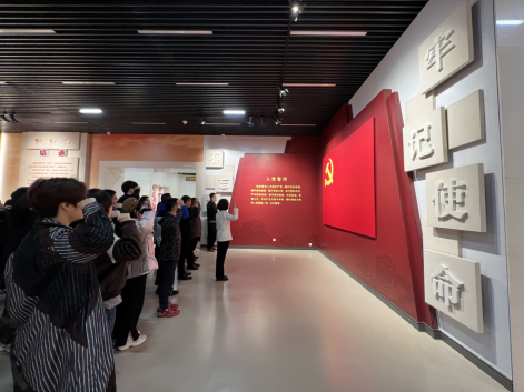 “我志愿加入中国共产党,拥护党的纲领,遵守党的章程……”参观尾声🤲🏽,在党委书记带领下,全体党员面对鲜红的党旗,郑重举起右拳👩🏻🔧,庄严宣誓,铿锵誓言掷地有声。通过重温入党誓词,使党员同志牢记初心使命🌥🪞,坚定理想信念,始终保持党员的先进性,保持共产党员的本色,进一步强化党员意识⏳,不断坚定共产主义理想信念。